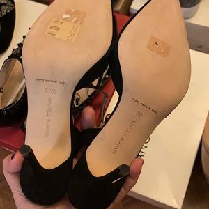 Just be clear what size is the left shoe? If it is 38.5, can I please see a side view of the shoes so I can judge the heel height. Many thanks;)