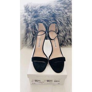 Suede heeled sandals in black. Come with box (replaced MB box) and dust bag.