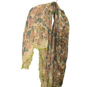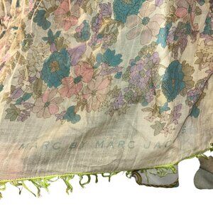 marc jacbos diaphanous Spring floral neon green fringe shawl scarf wrap