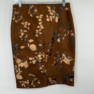 marc new york Brown Floral gold foiled Pencil Skirt Sz small faux suede new $59
