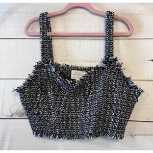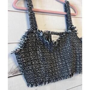 mare mare x anthropologie size XL tweed black white sleeveless cropped fringed