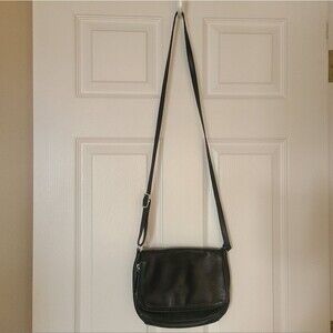 margot preston soft black genuine pebbled leather flap over crossbody bag
