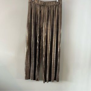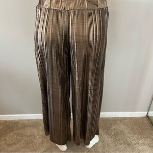 mark. Pleated Wide Leg Pants. Elastic waist. Beautiful metallic bronze color. Great pants to dress up or down. Appx. measurements with garment laying flat: