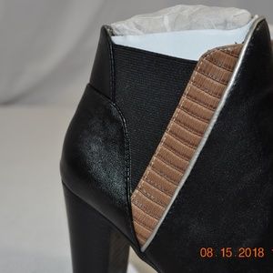 mark by Avon Sideswipe Booties Black Leather with Brown Lizard Accent Ankle Boots