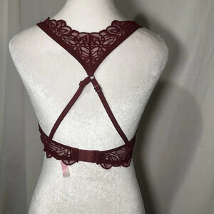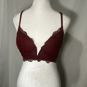 maroon / burgundy / wine Victoria's Secret PINK date push up racerback lacy bralette size small