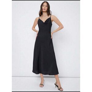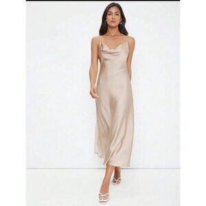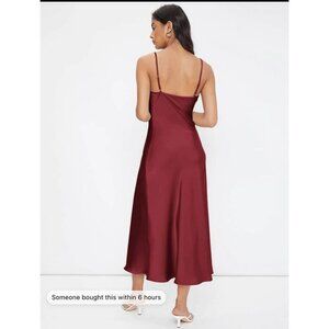 maroon dark red satin midi dress cowl neck