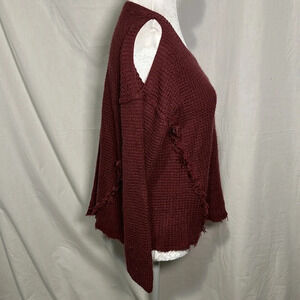 maroon fringy raw hem Coco + Jaimeson cold shoulder sweater size small