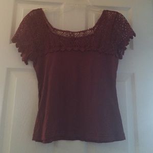 maroon top with lacy shoulders from pac sun. never worn, only tried on.