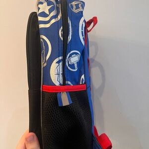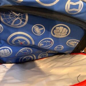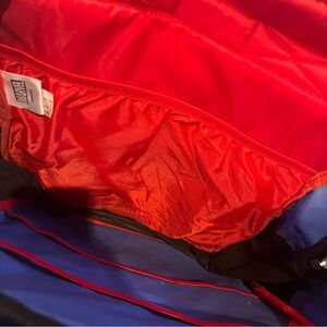 mostly good condition, a bit of staining at the bottom of the inside pocket, and fabric ripping a bit on the big front pocket