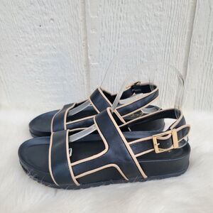 matisse light years sandals black with tan trim adjustable straps wmns sz 7