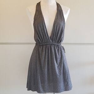Rayon, Lurex, Spandex Halter Dress with low back. Ties at Neck and waist. Lightweight sexy, comfortable. Perfect travel dress for day or evening.