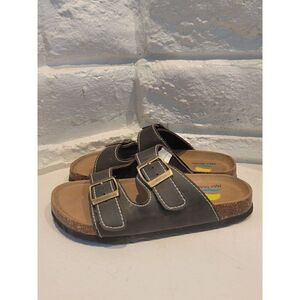 Pre-Owned Maui Island sandals eddy buckle sandals size 1. Flaws- few spots on footbeds- wear on bottom back right sole see pictures above.