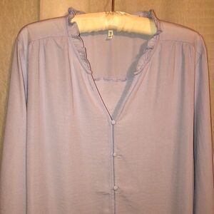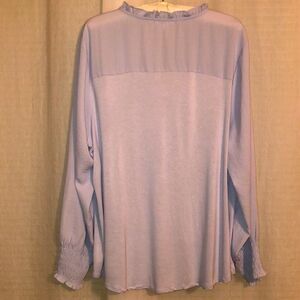 maurices 1X Light Blue Silky Cotton Back Combo Button Down Long Sleeve Blouse