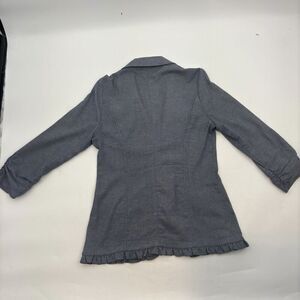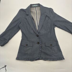 maurices Cotton Denim Blue Blazer Cotton With Ruche Sleeves 2 Front Pocket Med