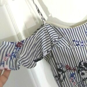floral long button lined blue stripe cold shoulder maxi dress rn 51783