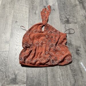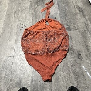 maurices medium Women’s Halter Orange Bodysuit Top Tank Shirt blouse flowy tie