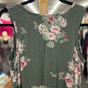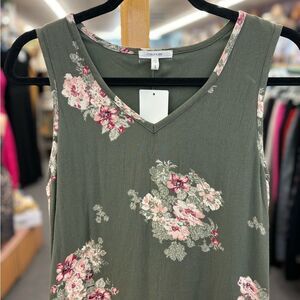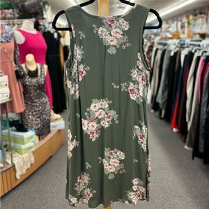 Chic green midi dress with floral print. Sleeveless design. Perfect for casual outings.