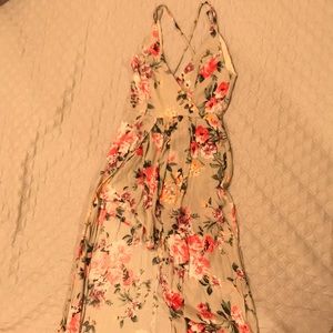 floral maxi-romper with a strapped back, can be worn casually or to a party, perfect for spring and summer, would look very nice with a pair of brown wedges or sandals, new and in perfect condition!