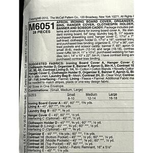 mcCalls 6051 Apron ironing board cover organizer bins clothes pin holder