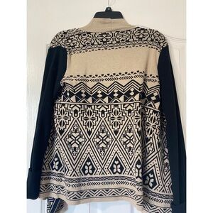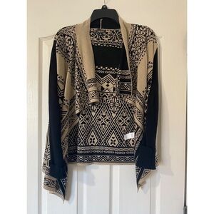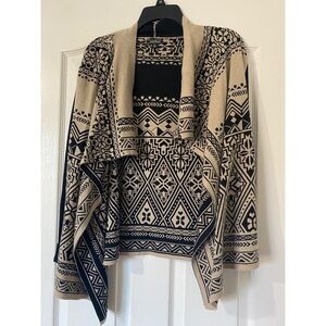 medium Lucky Brand Cream & Black Aztec Tribal Open Front Boho Sweater Cardigan