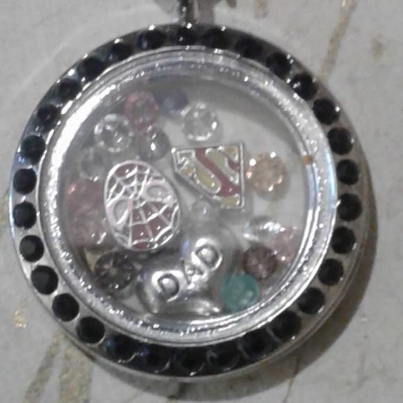 New "Superhero Dad" memory locket. Magnetic closure....can change charms inside....silvertone. Made by Me :)