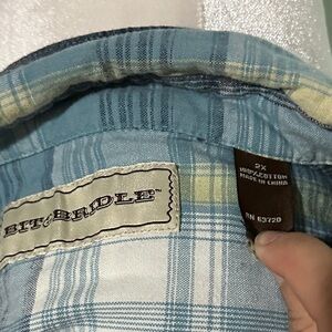 mens Blue Green white Plaid Bit & Bridle Button-Up Shirt size 2x