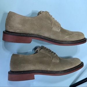 Leather lining, purchased in 2007. In good condition and only moderately used through the years..2-3 times a year. There is one small spot on the front right shoe which can most likely be removed with proper treatment. Golf bottom soles.