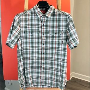 Shirt has been worn only a few times and is in great condition without any blemishes or tears. 100% cotton.