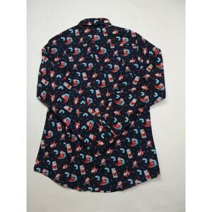 men's SIMON BANKS Christmas button up, Santa surfing, medium, NEW