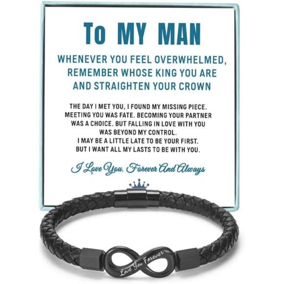 TO MY MAN INFINITY BRACELET - The infinity bracelet represents that two people are forever connected and will never be separated, showing the firmness and inseparability of love. It is the best gift for your lover, boyfriend, or husband. This thoughtful gift will definitely put smile on his face and will treasure it for a lifetime.