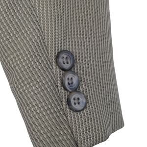 Featuring a triple button front, interior slip pockets and micro pinstriped fabric.