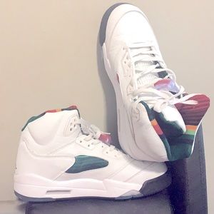 men's jordan 5 retro shoes with african design Green and red yellow inside like new good condition it’s a beautiful shoes no box