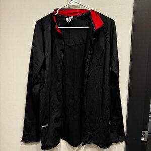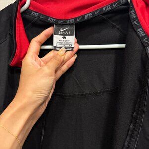 mens nike dri fit full zip, black with red accent
