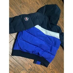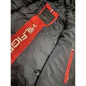 This men's size medium Tommy Hilfiger jacket is a stylish and practical choice for the winter and fall seasons. The regular fit and zip closure make it comfortable and easy to wear. The classic logo accents add a touch of signature Tommy Hilfiger style, making it a versatile addition to any wardrobe. Perfect for layering during chilly weather, this jacket is both fashionable and functional for everyday wear.