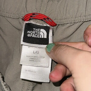 men's tan The North Face cargo shorts size large. Cut through outer lining of one pocket as shown