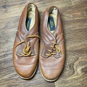 These vintage wonders are in great condition with the most major signs of a previous life being the scuff marks on the toe of the left shoe, and the black scuff on the outside of the toe part of the shoe- as pictured, otherwise these are in remarkable shape for their age and come from a very loving home that kept excellent care of these blasts from the past. They are size 7.5 M and looking for a new loving home. There seem to be no seperation from shoe and sole. What a find these are.