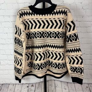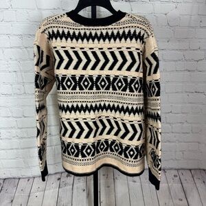 &merci Cream and Black Print Crewneck Sweater Size Large