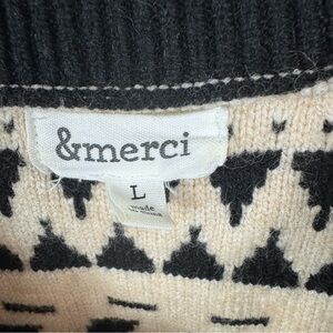 &merci sweater size large. Black and cream printed. Thick sweater. Crewneck. Good condition, except for some pulled threads on the back of the sweater. No holes. Smoke free home.