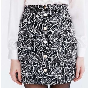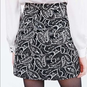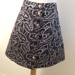 This skirt is brand new with tags! Bought at Urban Outfitters. Black with silver metallic paisley patterns on the skirt. Front does actually button and unbutton for easy on and off. Size 6. Retails for $69.