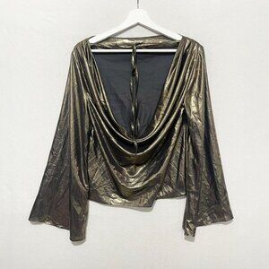 long sleeve metallic cowl back top blouse size 0 runs bigger (check measurements)