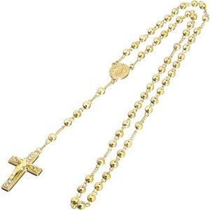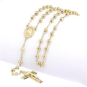 metaltree98 Rosary Gold Silver Black Rose Gold Tone Guadalupe Jesus Cross