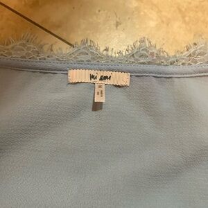 mi ami FRANCESCAS COLLECTION Light Blue Lace Trim wrap Blouse