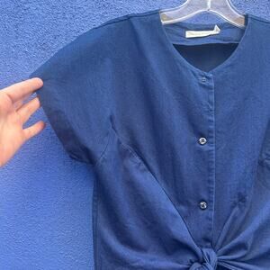 micaela greg navy cotton button and tie front dress size medium