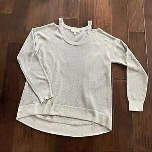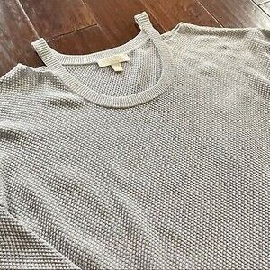 michael Kors grey silver metallic cold shoulder sweater knit size XL