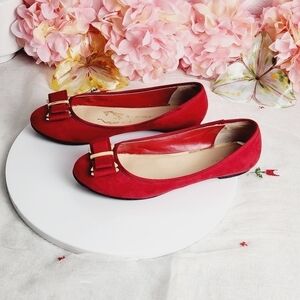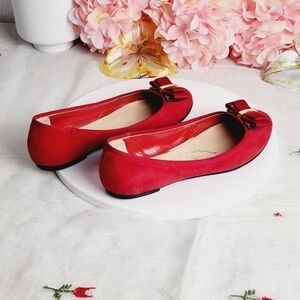 michael Shannon Gabby Red & Gold Bow Flat Women's Size 6
