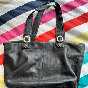 Beautiful Michael Kors black leather bag in excellent shape. The leather is very soft and the gold has a few small scuffs. Interior and zippers work perfectly.