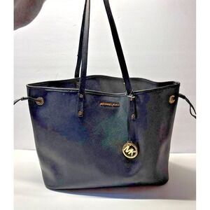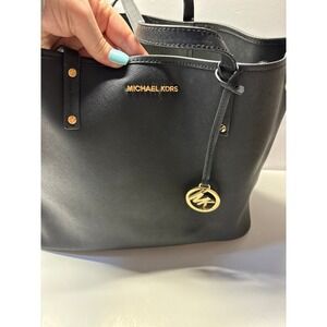 Michael Kors, Black Jet Setter "Travel" bag 11x18 no liner with draw string sides. Used condition sold as is. No rips no holes smoke free pet friendly home. Minor signs of use see all pics. Still great bag. Fits laptop tablet umbrella cloths whatever you need.