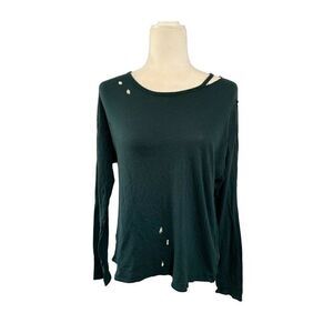 michael stars womens solid pine green long sleeve holed top t shirt.
