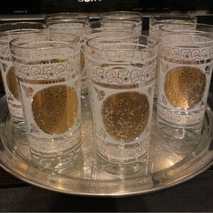 mid century modern Hazel Atlas Frosted and Gilded Aztec Tumbler Cocktail Glasses