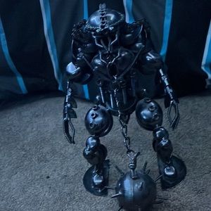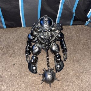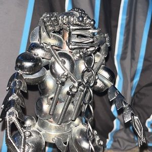 Metal character made out of nut screws and bolts and even bike chains very cool be careful with young children